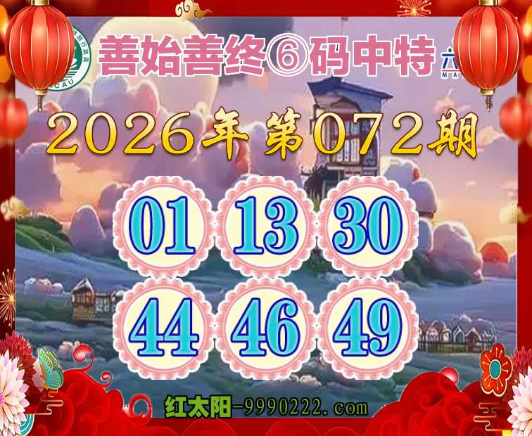 072期:《善始善终》 😍⑥码中特😍【01.13.30.44.46.49】开:46
